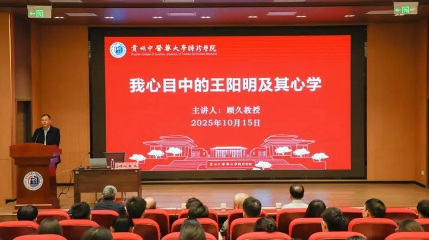 讲座伊始,陈龙斌对顾久教授及莅临现场的各位嘉宾表示热烈欢迎,并指出,作为扎根于王阳明“龙场悟道”之地的高校,深入挖掘并创造性转化阳明心学智慧,对于培养兼具精湛医术与高尚医德的中医药人才具有特殊而重要的意义。