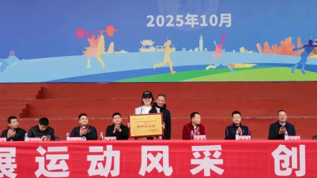 梅国海为女子团体第二名颁奖