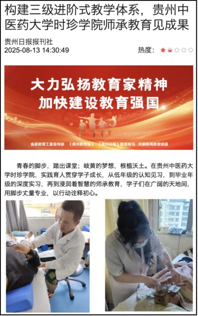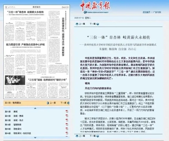 《中国教育报》专题报道我校“三位一体”人才培养与民族医学传承新模式。