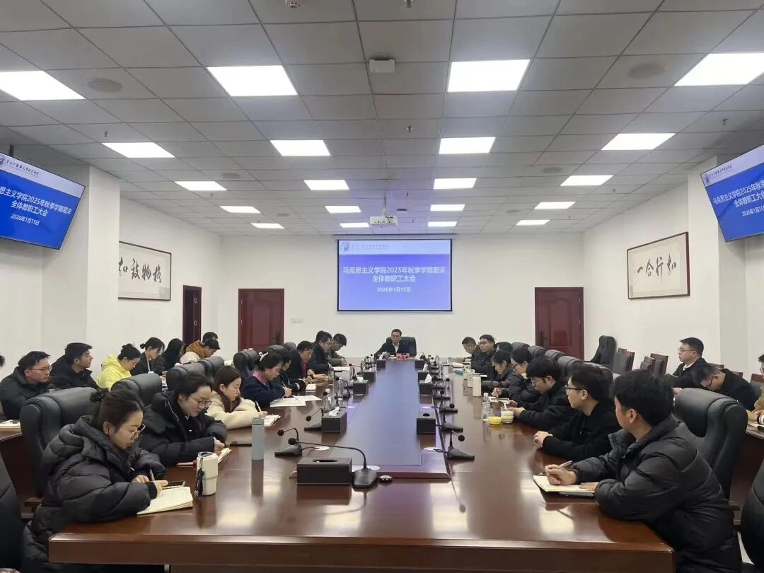 2026年1月15日上午8时30分,马克思主义学院2025年秋季学期期末教职工大会在图书馆六楼会议室顺利召开。学校党委副书记、纪委书记戴德铸出席,马克思主义何伟福院长主持会议,副院长李齐松及全体教职工参会。