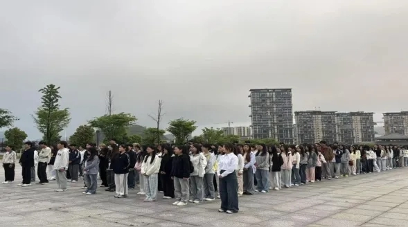 随后,升国旗、奏唱国歌。在激昂的国歌声中,五星红旗冉冉升起,迎风飘扬。全体师生庄严肃立,向国旗行注目礼,齐声高唱国歌,歌声嘹亮,响彻校园广场。这一刻,家国情怀与安全使命在每个人心中激荡,大家以最真挚的情感表达对祖国的热爱与守护国家安全的决心。