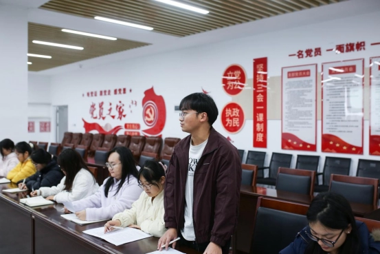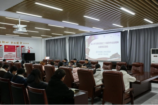 为深入学习贯彻党的二十届四中全会精神,引导学生党员准确把握全会精神的丰富内涵和核心要义,11月20日,医药学部第二学生党支部在图书馆党员活动中心,开展深入学习贯彻党的二十届四中全会精神主题党日活动,活动由党支部书记孔得信主持,支部全体学生党员和发展对象参加。