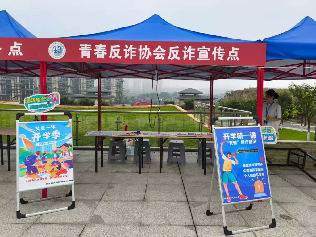 考虑到开学期间有的同学会携带大量财物, 在此期间学校专门设置反诈宣传点,为新生讲解 反诈知识以及通过发放反诈宣传手册等方法来进 行反诈宣传,目的是为了守护好我们的钱袋子, 谨防掉入骗子的陷阱。