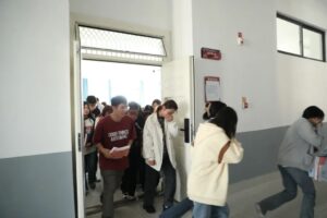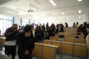 师生撤离后疏散总指挥迅速检查各教学楼内是否还有人员滞留。人员疏散到集合地点后,各辅导员按班级集合、点名,并将人员集合情况和清场情况报告给指挥组。