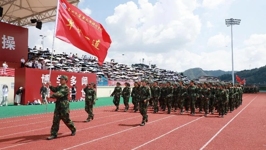 贵州中医药大学时珍学院举行2024级新生军事训练会操暨开学典礼