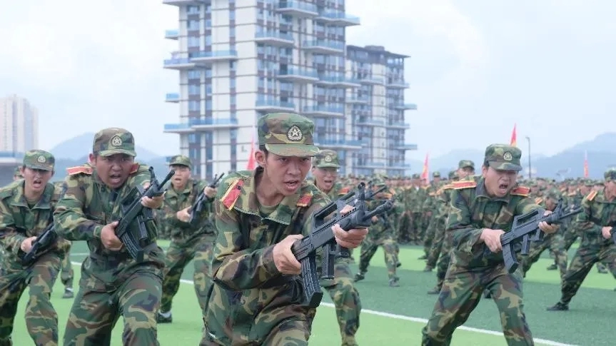 典礼在雄壮的国歌声中拉开序幕,军训会操环节,2024级新生们展示了擒敌拳、刺杀操和热身操,他们队列整齐、口号响亮,充分展现了军训期间的训练成果和新时代大学生的精神风貌。
