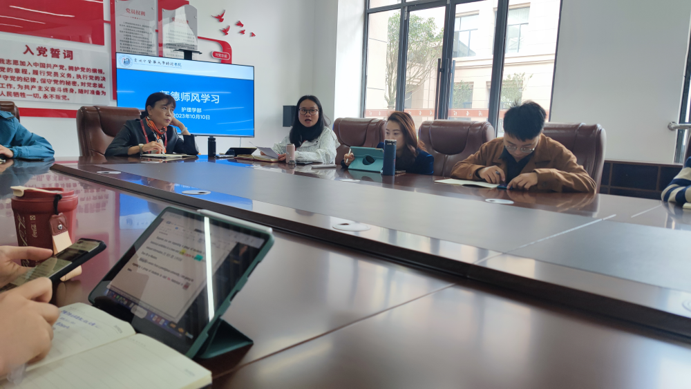 第三项议程由石江梅副部长汇报9月学生工作情况及部署10月学生工作,主要强调学生的23级新生入学教育工作、特色文化建设、学生日常教学工作,学生实习、护理急救培训、学生档案管理、学生奖学金评定等工作做逐一汇报。