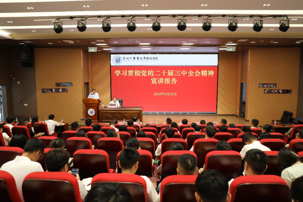8月29日,贵州中医药大学时珍学院在学术报告厅举行学习贯彻党的二十届三中全会精神宣讲报告会,中共贵州省委党校教授郝建作题为《进一步全面深化改革,强力推进中国式现代化–学习贯彻党的二十届三中全会精神》的主讲,学院领导、全体教职工参加,会议由党委书记陈龙斌主持。