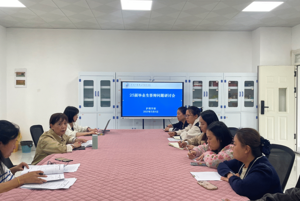 为全方位审视2025届护理学专业毕业生毕业答辩工作,深入挖掘问题,持续优化教学与人才培养体系,护理学部于2025年5月6日组织召开“2025届毕业生毕业答辩问题研讨会”。护理学部院长李丽,银铃教授姚晚侠,各指导教师以及教学管理相关人员共同参会,聚焦毕业答辩流程、评审标准、常见问题及应对策略等关键议题展开深入探讨,对毕业答辩全过程进行复盘研讨。