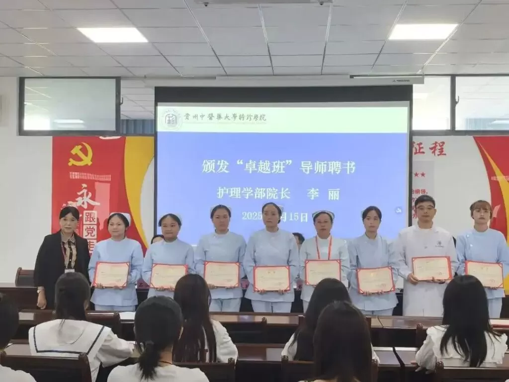开班仪式上,李丽宣读了《贵州中医药大学时珍学院2025级护理学卓越班学生及导师名单》并颁发了卓越班导师聘书。