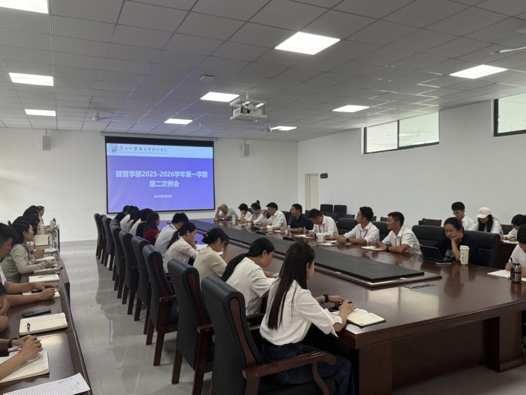 2025年9月9日,健管学院于笃行楼410会议室召开本学期第二次工作会议。会议部署了新学期重点任务,系统推进学部制度化、规范化体系建设与人才培养提质增效。学校梅国海常务副院长、学部领导、校外导师及全体教师参与会议。