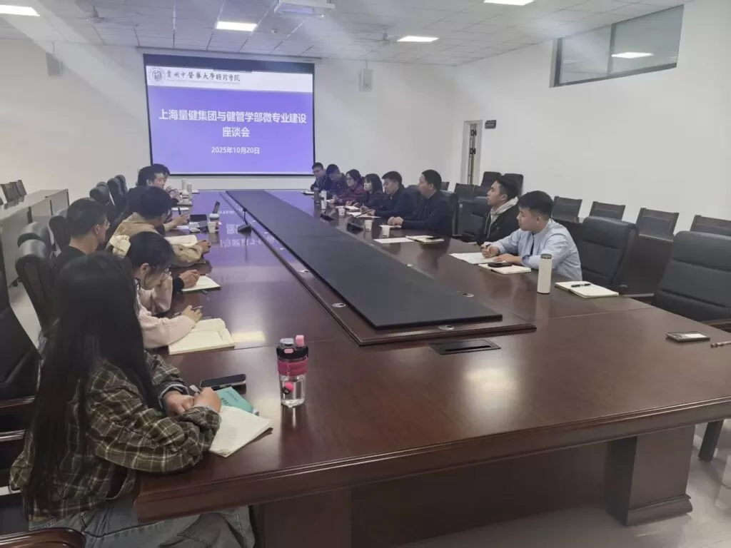 2025年10月20日,贵州中医药大学时珍学院健管学部与上海量健集团微专业建设座谈会在笃行楼410顺利召开。本次会议旨在通过深入沟通,推动微专业建设,创新人才培养模式,共同培育符合大健康产业需求的高素质应用型人才。