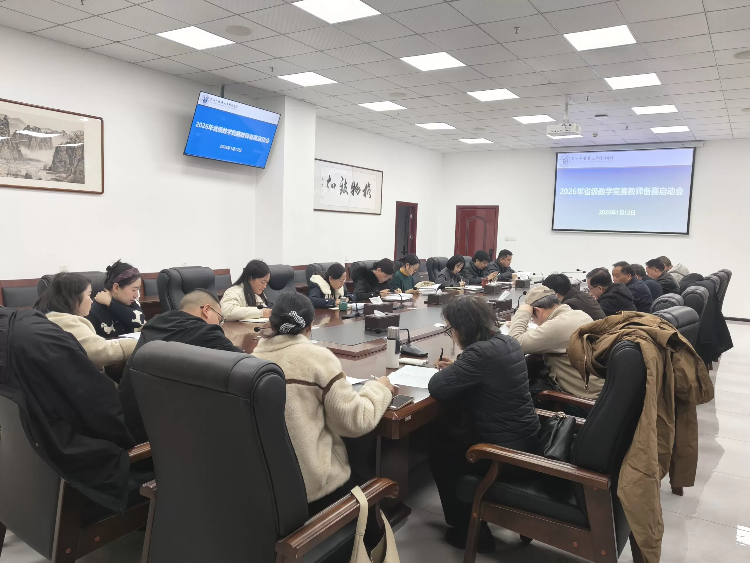 为切实做好2026年省级教学竞赛备赛工作,以“以赛促教、以赛促改、以赛促建”为导向,推动教育教学改革,提升教学质量和人才培养水平,学校于2026年1月12日上午在图书馆六楼612会议室召开2026年省级教学竞赛教师备赛启动会。学校党委副书记戴德铸、副院长白宗新出席会议,各学部(院)院长、教学副院长、竞赛指导专家及拟参赛主讲教师参加会议。