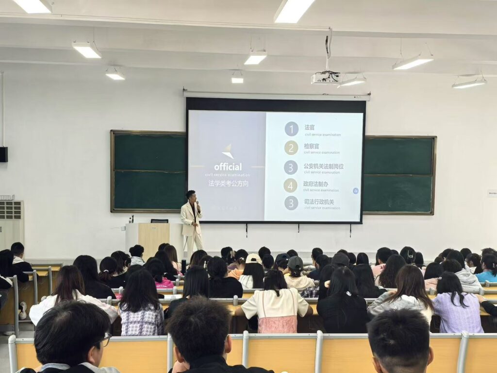 宁辉老师首先深入剖析了公务员考试的整体形势,详尽阐述了近年来法学专业在考公与就业领域的显著优势。他通过具体的考研、考编、考公数据,使同学们清晰地认识到法学专业的独特竞争力。在讲座中,宁辉老师还对各省公务员考试的岗位需求进行了深度解读,并结合数据对未来国家公务员的职业发展趋势作出了合理预测。