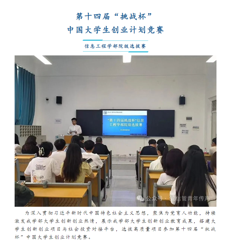 第十四届“挑战杯” || 中国大学生创业计划竞赛 ——信息工程学部院级选拔赛