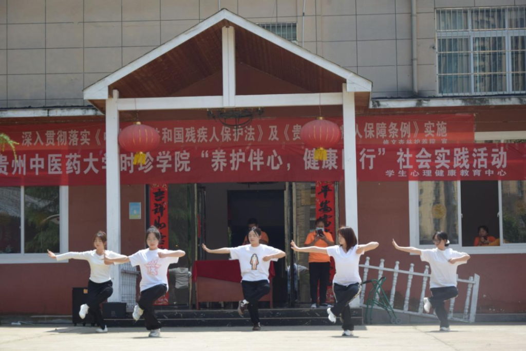 5月 23 日,我院大学生心理健康教育中心组织大学生心理健康协会、音乐社、武术协会、棋社、WRB街舞社、相声社及乒乓球社共计60余名学生前往修文杏林护养院,在中心负责人闫军、指导教师姚琴的带领开展“养护伴心,健康同行