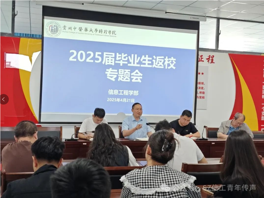 4月21日中午,信息工程学部在笃行楼309会议室召开会议,会议围绕学生工作、教学科研及安全管理展开全面部署,统筹推进学部工作例会、2025年专升本专题会及毕业生返校工作三大核心议题。学部全体教职员工及辅导员出席会议,会议由张俊院长主持,肖义虎院长作总结讲话。