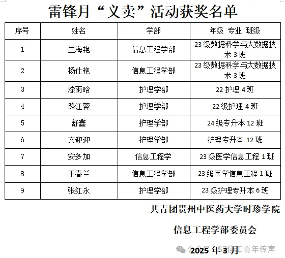 3月14日,“追‘锋’市集”义卖活动于食堂门口顺利开展。活动现场热闹非凡,义卖人员名单也随之揭晓: