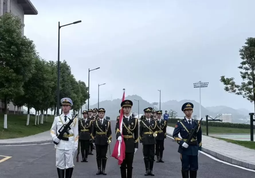 在全体师生的注目下,国旗护卫队昂首挺胸,步伐铿锵,护卫五星红旗迈向升旗台。伴随着激昂的《义勇军进行曲》,鲜艳的国旗冉冉升起,全体师生肃立行礼,赤子之心与奋斗信念随旗帜一同飞扬。