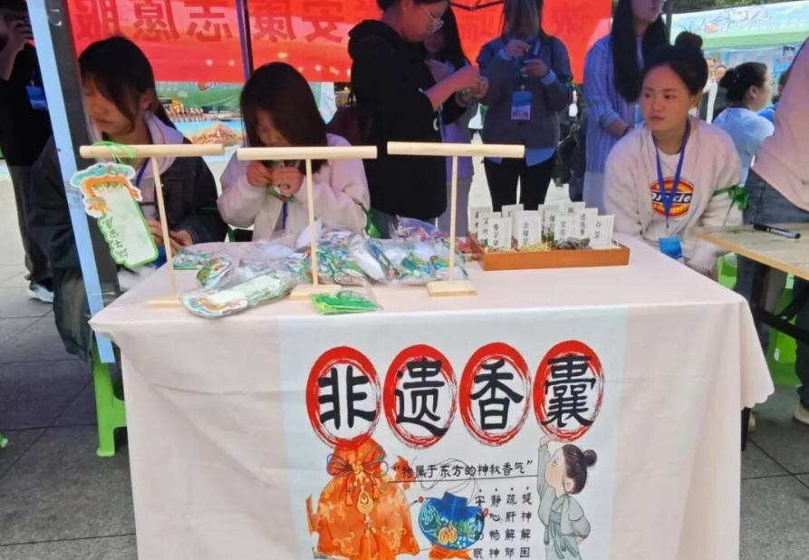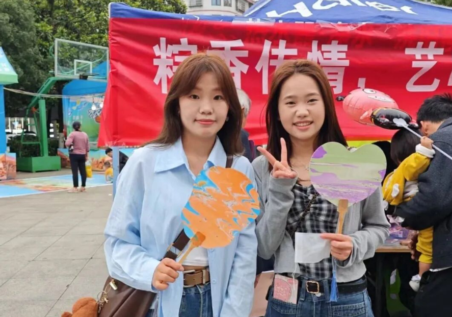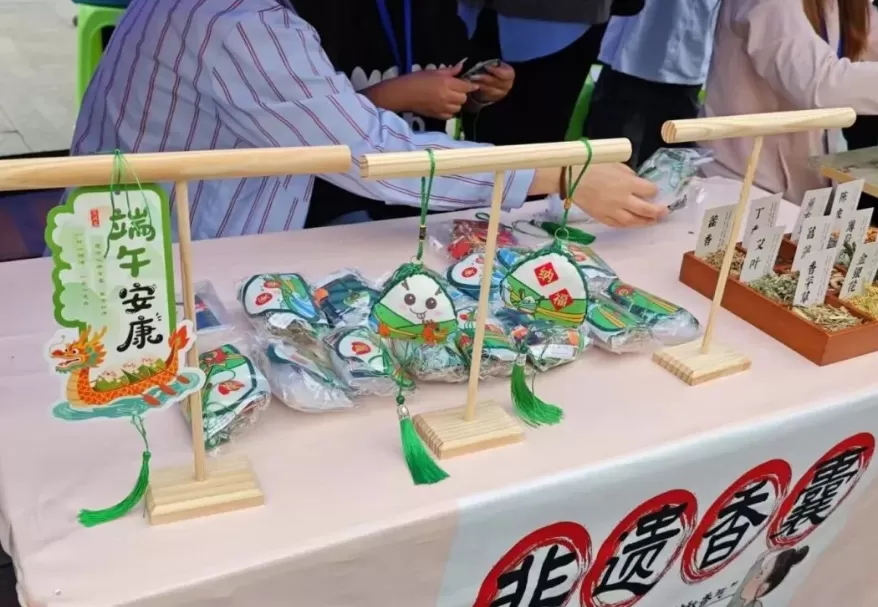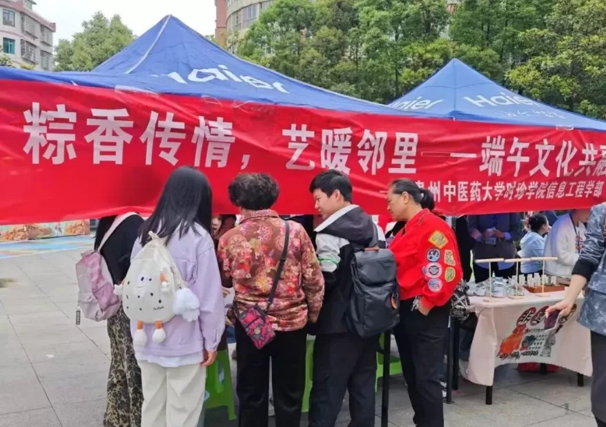 贵州中医药大学时珍学院信息工程学部以“粽香传情,艺暖邻里——端午文化共融”为主题,组织了20余名志愿者和教师为群众带来了漆扇、手工香囊及养生艾草锤等非遗手工艺品等传统手工艺文化体验。