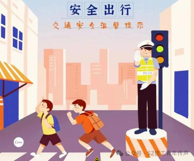 严格按交通信号灯指示通行,走人行横道;步行、骑车、乘车过程中,时刻留意周边交通状况,避让车辆、行人,不抢行、不闯灯。