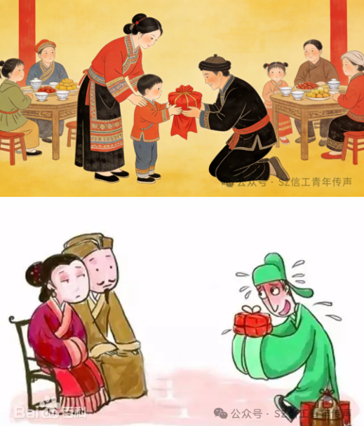 接寿习俗意思是祝岳父岳母长命百岁。送节的另外一个典型礼品就是“罐罐肉”:用沙锅炖了猪脚和雪山大豆、海带,再用红纸,红绳封了罐口,给岳父岳母送去。这是对辛辛苦苦将女儿养育成人的岳父岳母表示感谢和敬意。如果是新婚女婿送节,岳父岳母还要回赠雨伞,让女婿出门奔波,能遮风挡雨,也有祝愿女婿人生旅途顺利平安的意思。