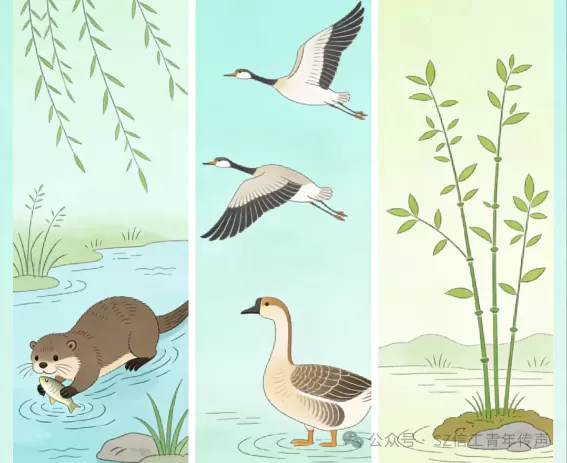 一候獭祭鱼:雨水节气来临,水面冰块融化,水獭开始捕鱼了。水獭喜欢把鱼咬死后放到岸边依次排列,像是祭祀一般,所以有了“獭祭鱼”之说。