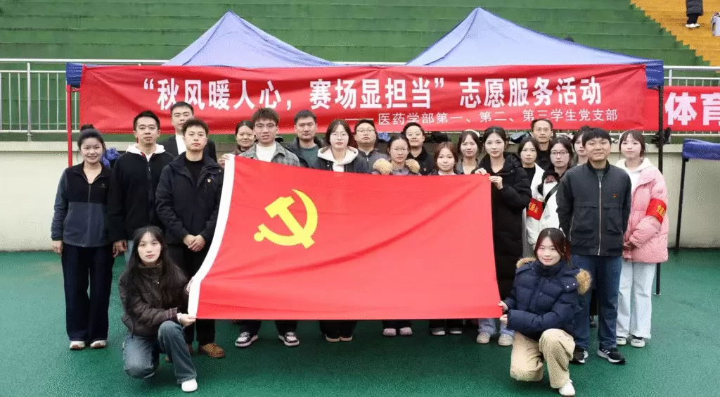2025年10月25日至26日,医药学部第一、第二、第三学生党支部以“秋风暖人心,赛场显担当”为主题,组织在校全体学生党员及发展对象开展运动会志愿服务,用实际行动践行初心使命,为秋日赛场增添 “志愿红”,既保障了运动会顺利进行,也充分发挥了党支部战斗堡垒作用与党员先锋模范作用。