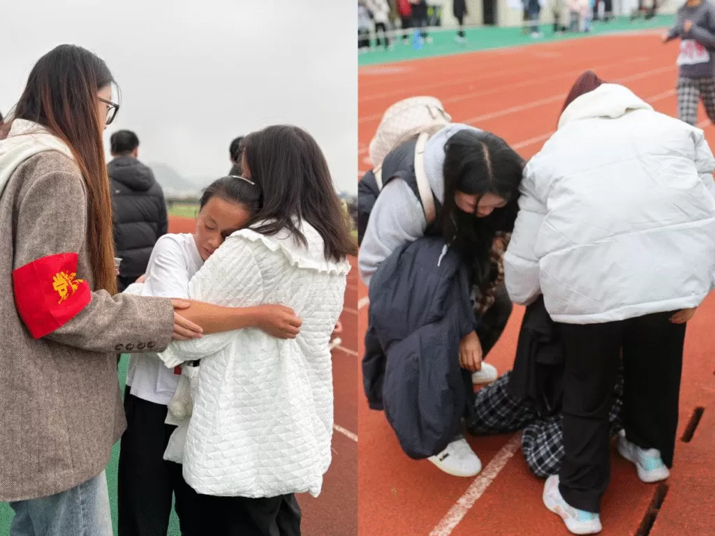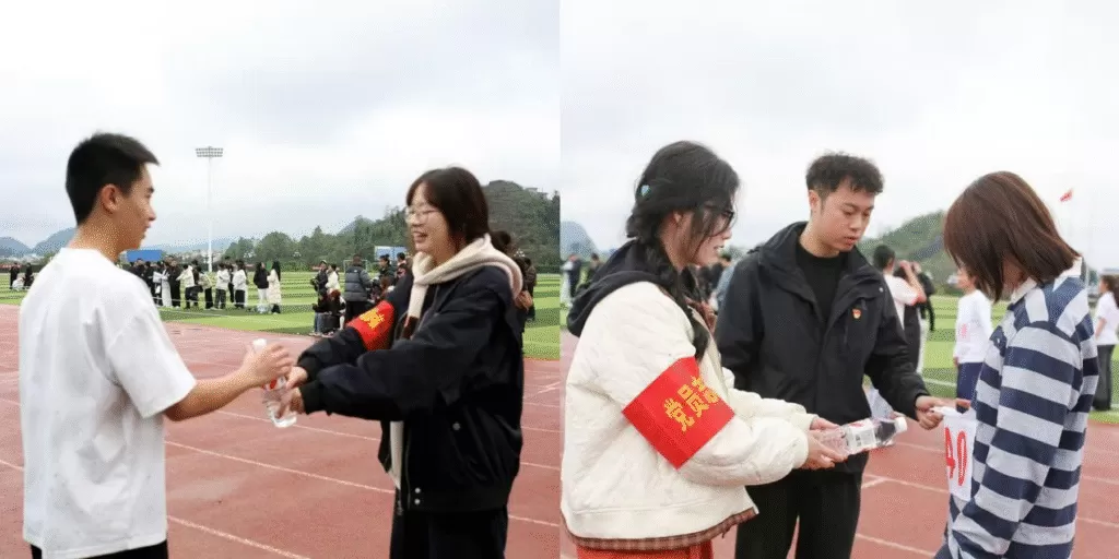 赛中服务环节,志愿者们化身贴心的“保障员”。运动场上,运动员挥洒汗水、奋勇拼搏;赛场内外,志愿者服务热情高涨:或在跑道旁为运动员加油呐喊,或在终点线搀扶运动员、维持秩序,或在服务区提供饮用水与能量补给、处理突发情况。他们以热情周到的服务为运动健儿保驾护航,用实际行动诠释